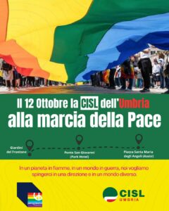 La Cisl Umbria aderisce alla Marcia della Pace Perugia – Assisi del 12 ottobre 2025